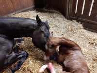Am frühen Morgen des 20.04.2021 schenkte sie einem außerordentlich schönen, langbeinigen Hengstfohlen das Leben. Scooter B ist wie alle Kinder von Eriscalina völlig problemlos gelandet und hat ebenso zügig und zielstrebig ins Leben gefunden, sodass unsere Hilfe nicht gefragt war. Als hingebungsvolle Mama weiß unsere "Tiffie" genau, was zu tun ist, und lässt uns geduldig an ihrem neuen Schatz teilhaben.